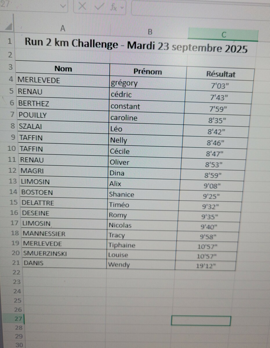 Hier, a eu lieu le run2k au club. 20 participants se sont répartis sur 3 séries. A l'arrivée, chacun a reçu un tour de cou offert par la FFA. Voici les résultats.